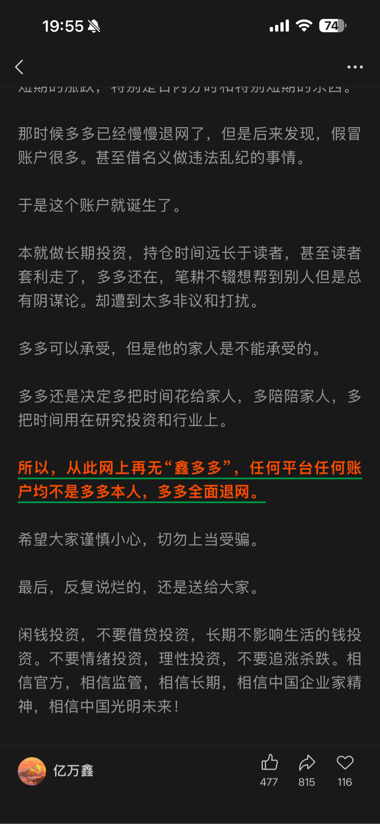 郑重声明:用户在财富号/股吧/博客等社区发表的所有信息(包括但不限于文字、视频、音频、数据及图表)仅代表个人观点,与本网站立场无关,不对您构成任何投资建议,据此操作风险自担。请勿相信代客理财、免费荐股和炒股培训等宣传内容,远离非法证券活动。请勿添加发言用户的手机号码、公众号、微博、微信及QQ等信息,谨防上当受骗!