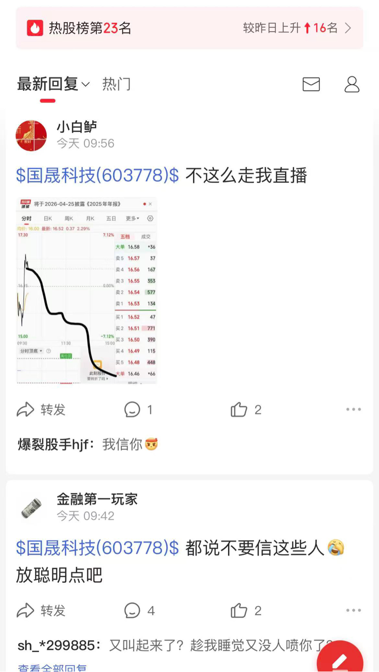 $国晟科技(SH603778)$ 内心是有多丑陋的人 内心是有多恐惧 你恐惧为什么又敢买呢 还不是你想赚钱