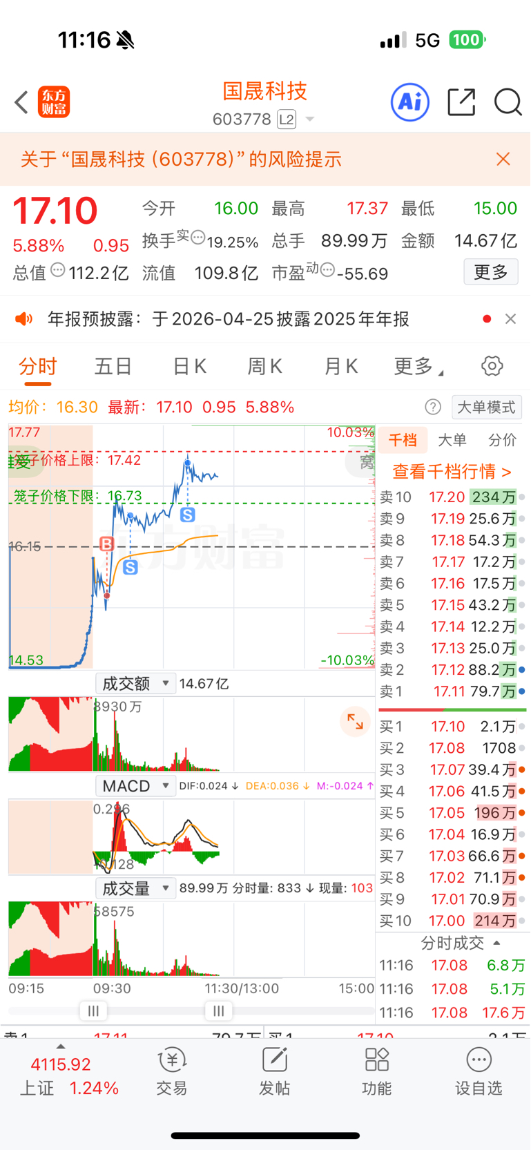 $国晟科技(SH603778)$ 今天下班了