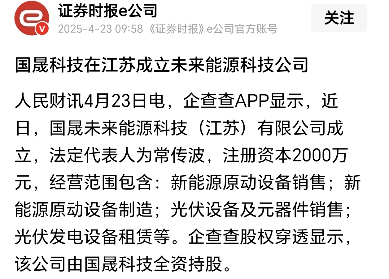 国晟科技战略布局再提速!上市公司持续设立新公司,拓展新赛道,成长动能持续增强。