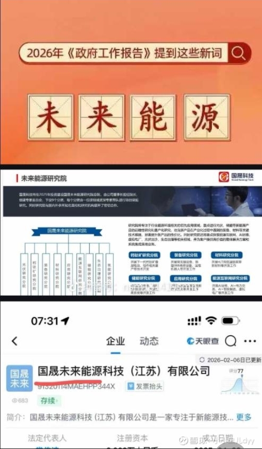 政府报告首提“未来能源”。国晟科技有个子公司叫:国晟未来能源科技(江苏)有限公司。名字都一样好巧合啊?