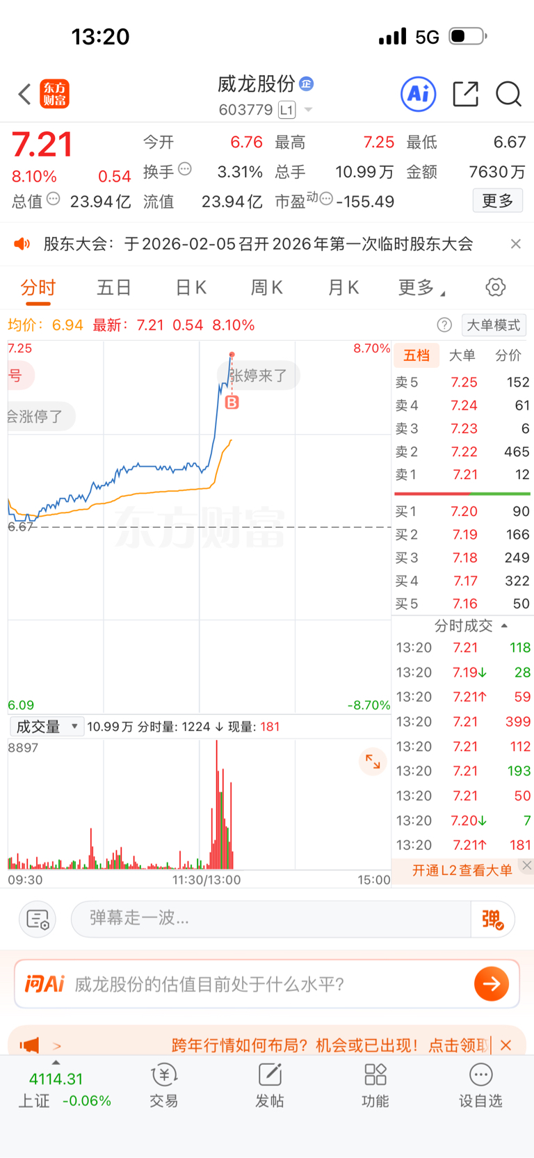 $威龙股份(SH603779)$ 割肉就涨 气死