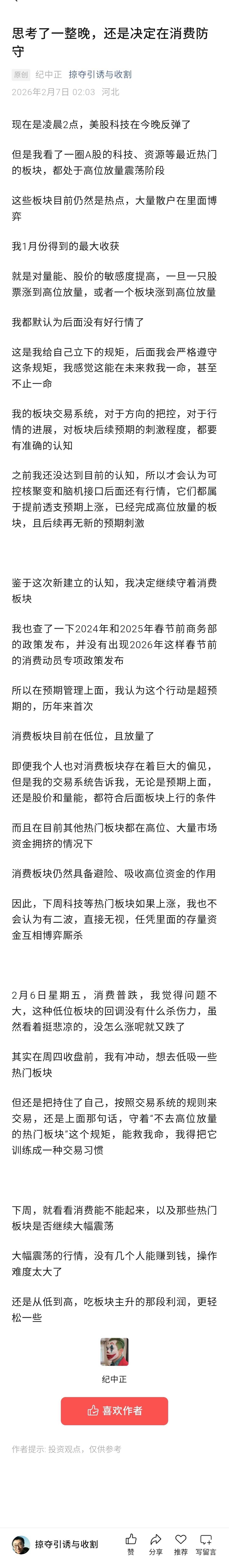 复盘思考了整晚,还是决定在消费防守