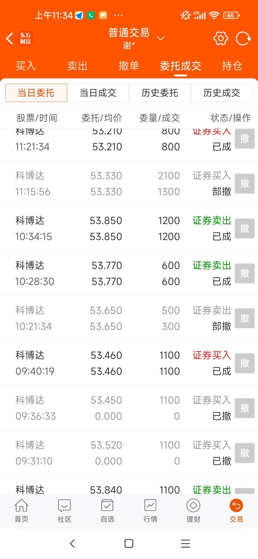 $科博达(SH603786)$ 每天高卖低接,各位看看我的T做得如何?