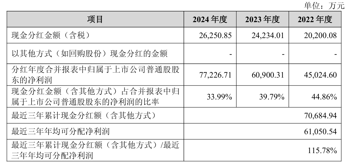 最近三年,公司以现金方式累计分配的利润共计7.07亿元,占最近三年实现的年均可分配利润的115.78%。截至2025年6月30日,公司货币资金高达9.37亿元,资产总额72.76亿元且资产负债率仅23.34%。