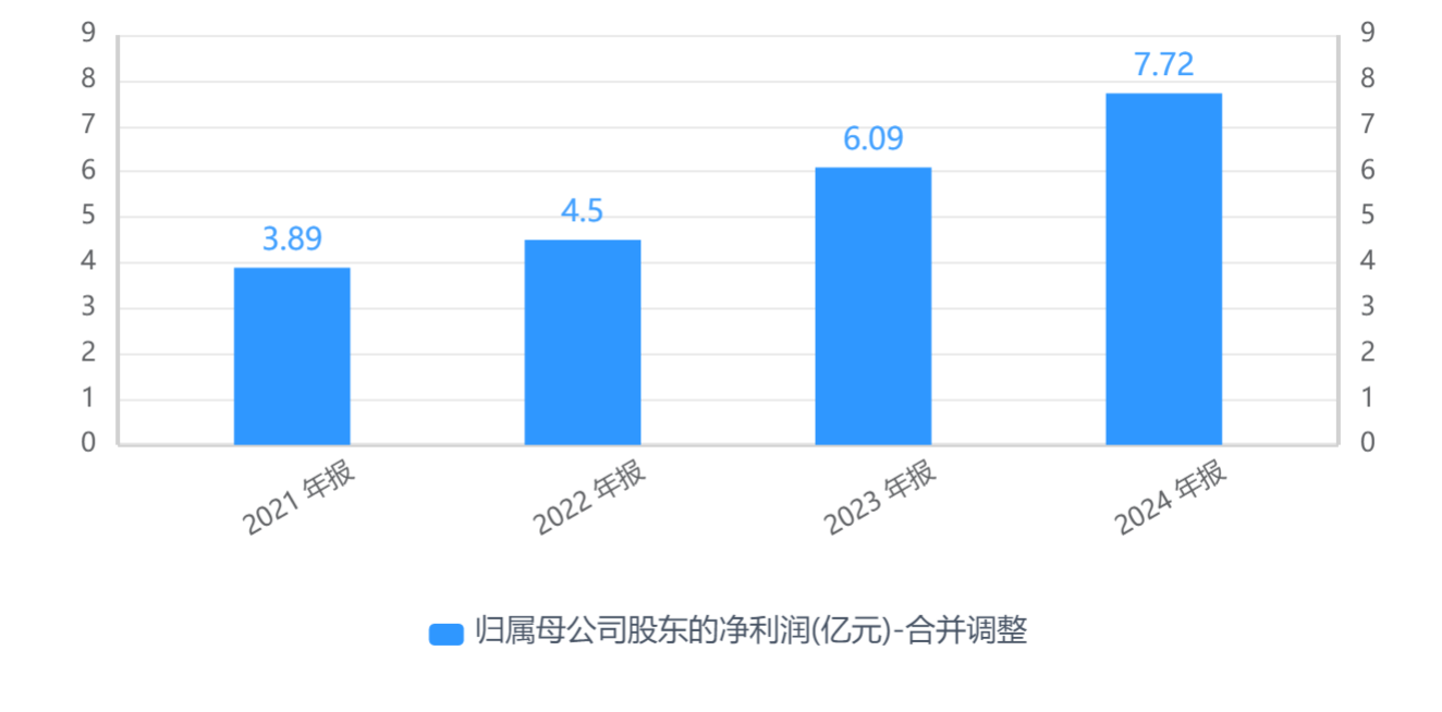 纵观近年来的业绩表现,科博达净利润近三年持续增长,今年上半年延续增长趋势。2021年至2024年,公司归母净利润分别为3.89亿元、4.5亿元、6.09亿元、7.72亿元。