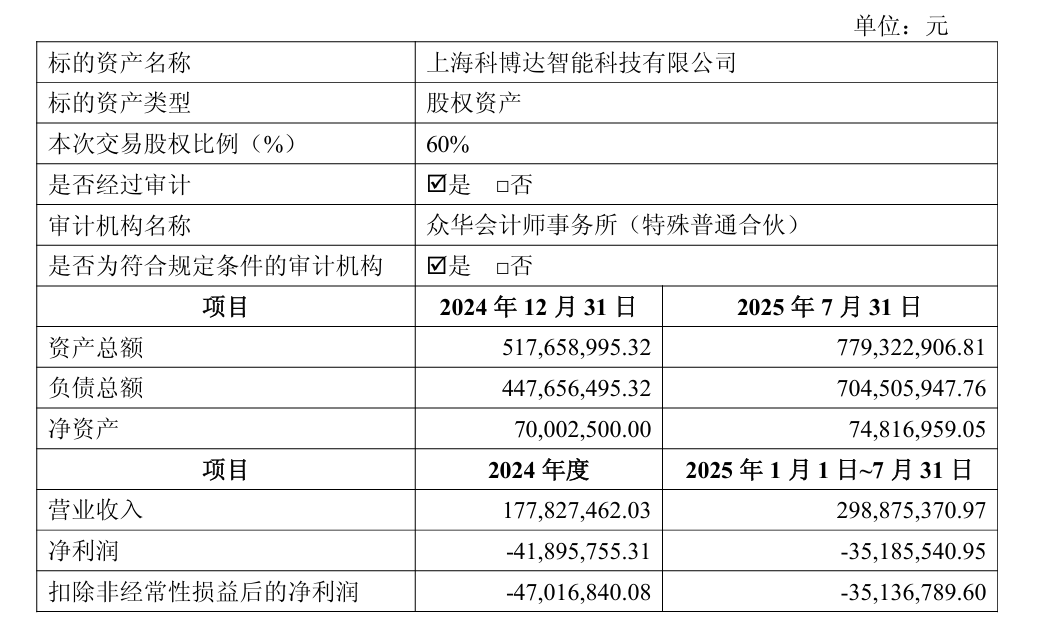 然而,科博达智能科技自成立以来仍处于亏损状态,其中2024年度、2025年1至7月分别净亏损4189.58万元、3518.55万元。
