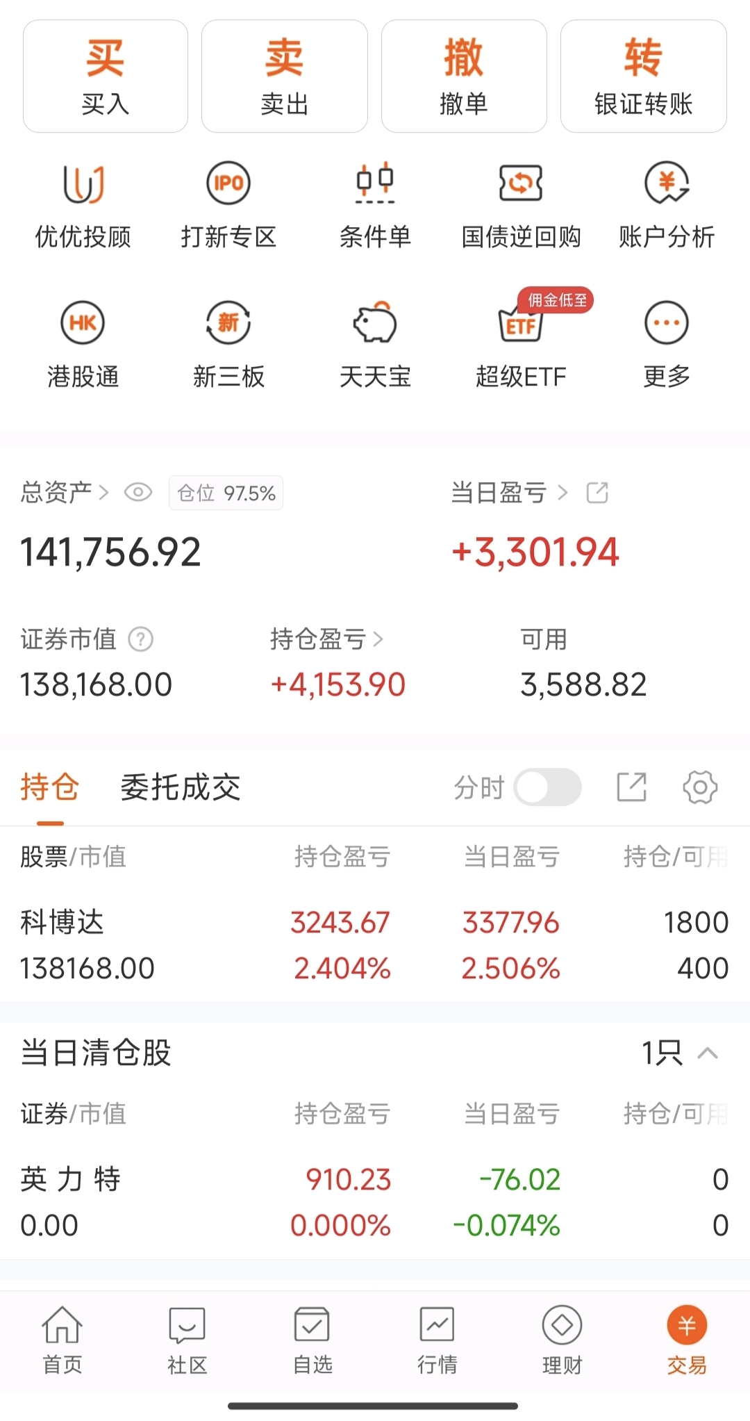 挑战10万变20万3月份初始本金10万当前资金:14.1756万特别声明:我开实