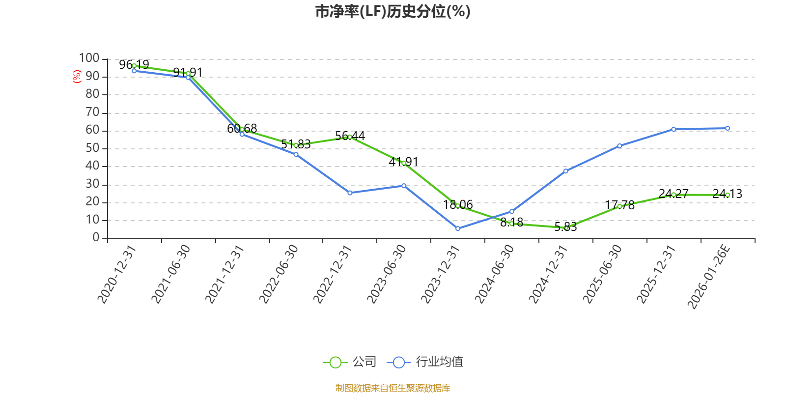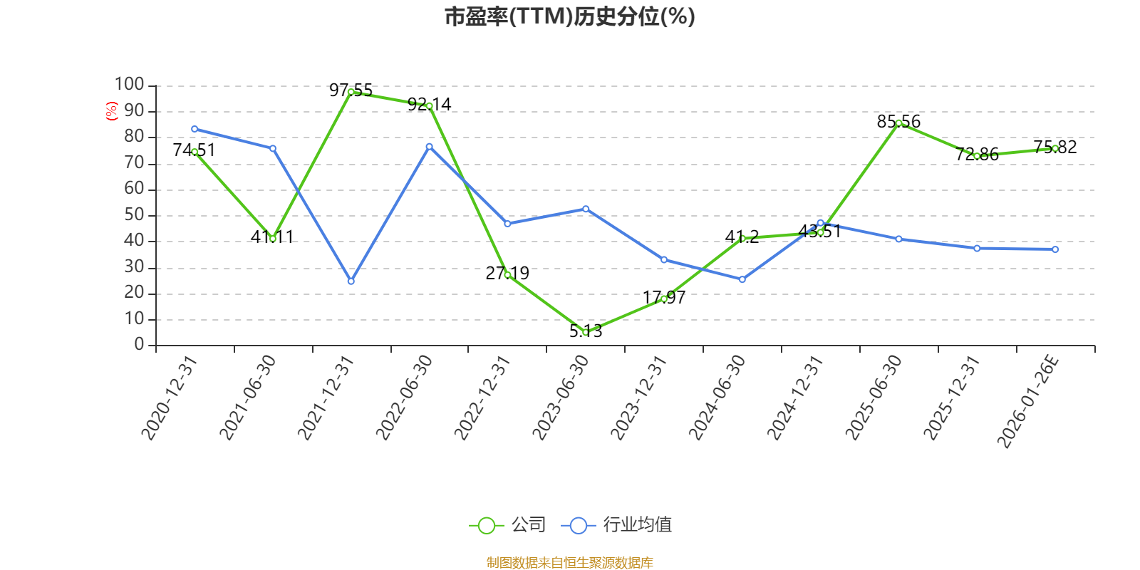 市盈率、市净率为负时,不显示当期分位数,会导致折线图中断。
