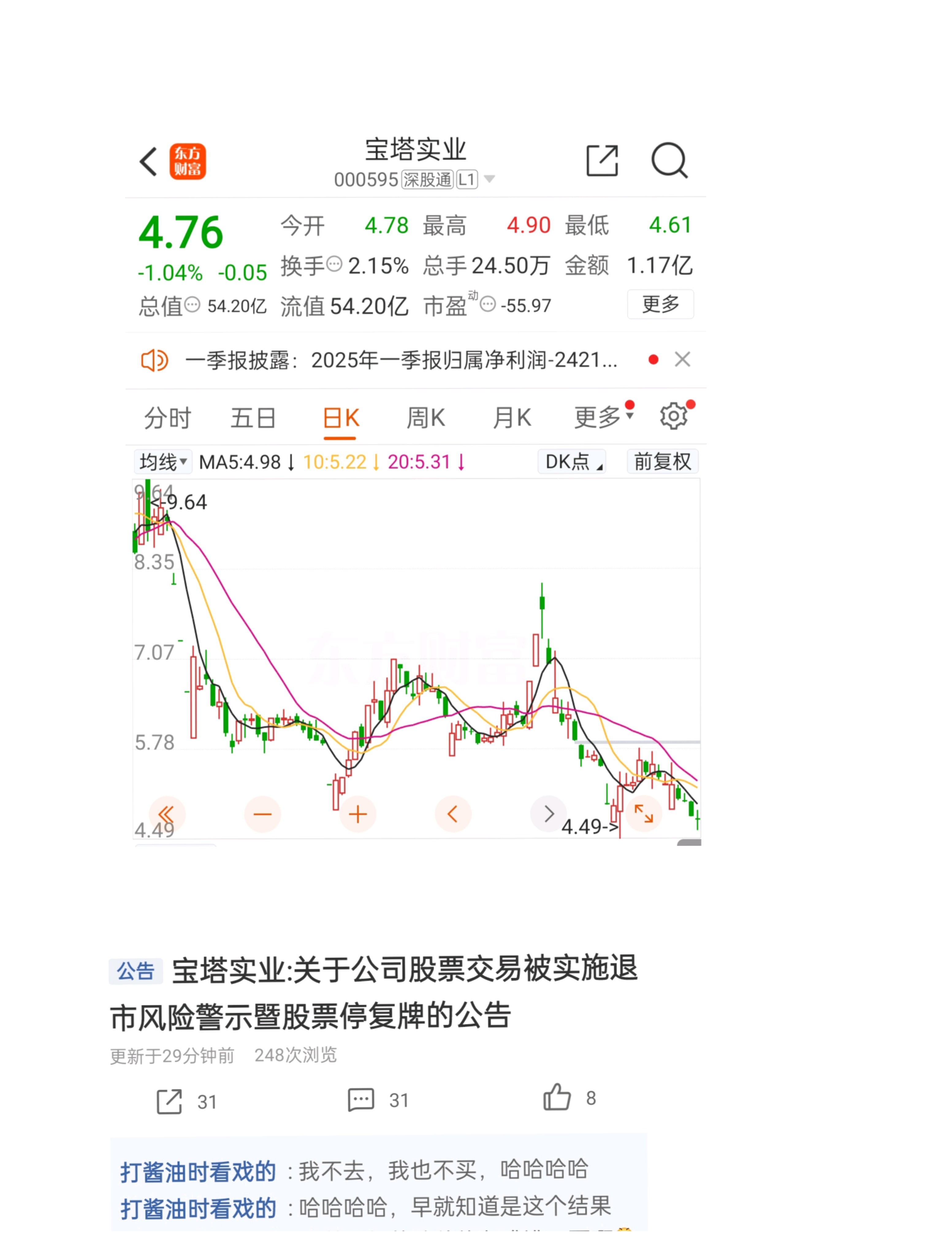 和*st宝实走势像不像?戴帽前丁点反弹都没有,还幻想连板张婷,真可笑!