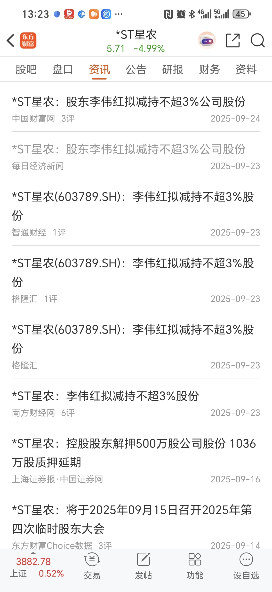 $*ST星农(SH603789)$ 从大股东减持到信息披露违法违规!相差没有一个月的时间,是巧合吗?