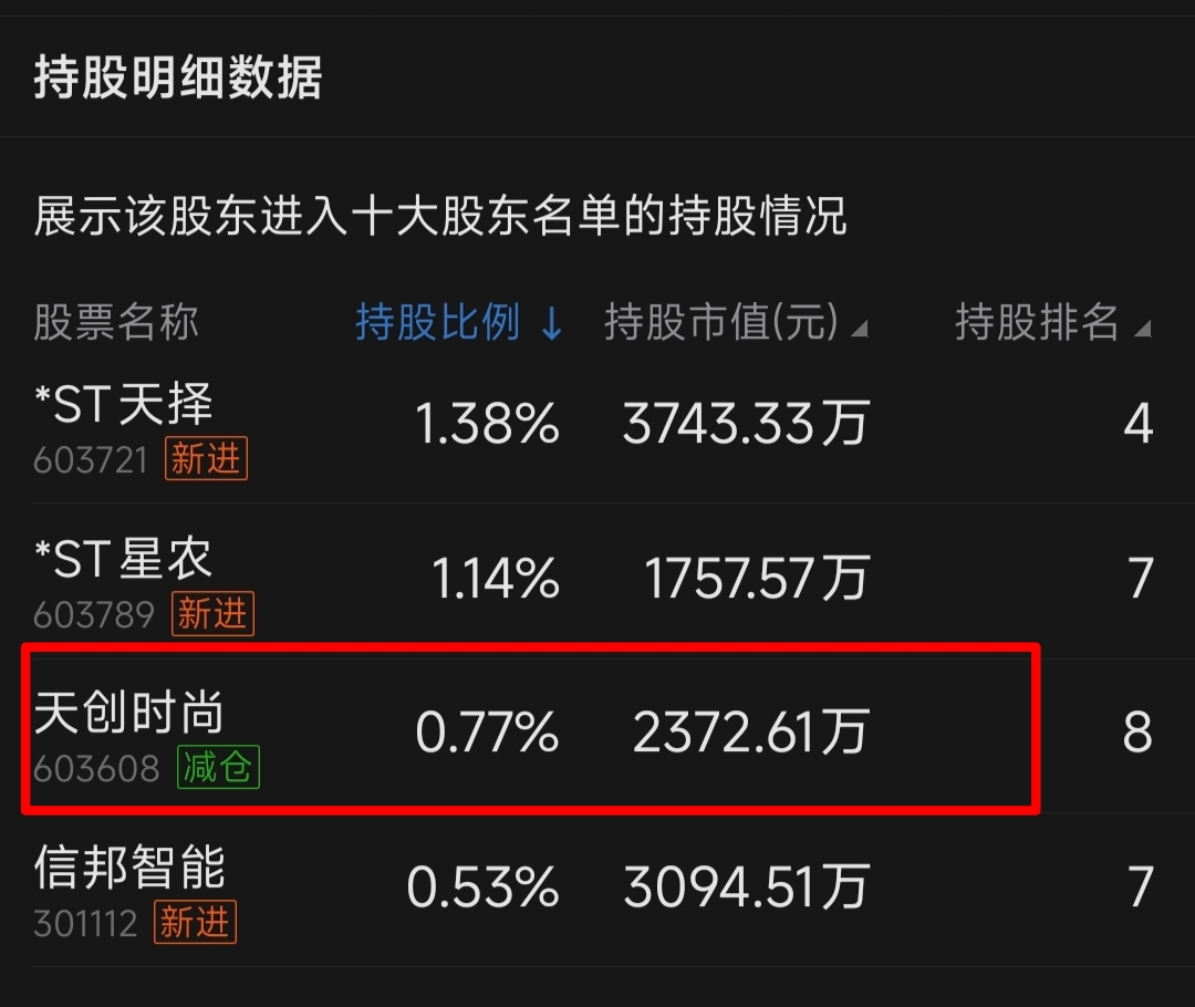 这个私募2024年底进的天创时尚,那时候是ST天创,赚了不少。