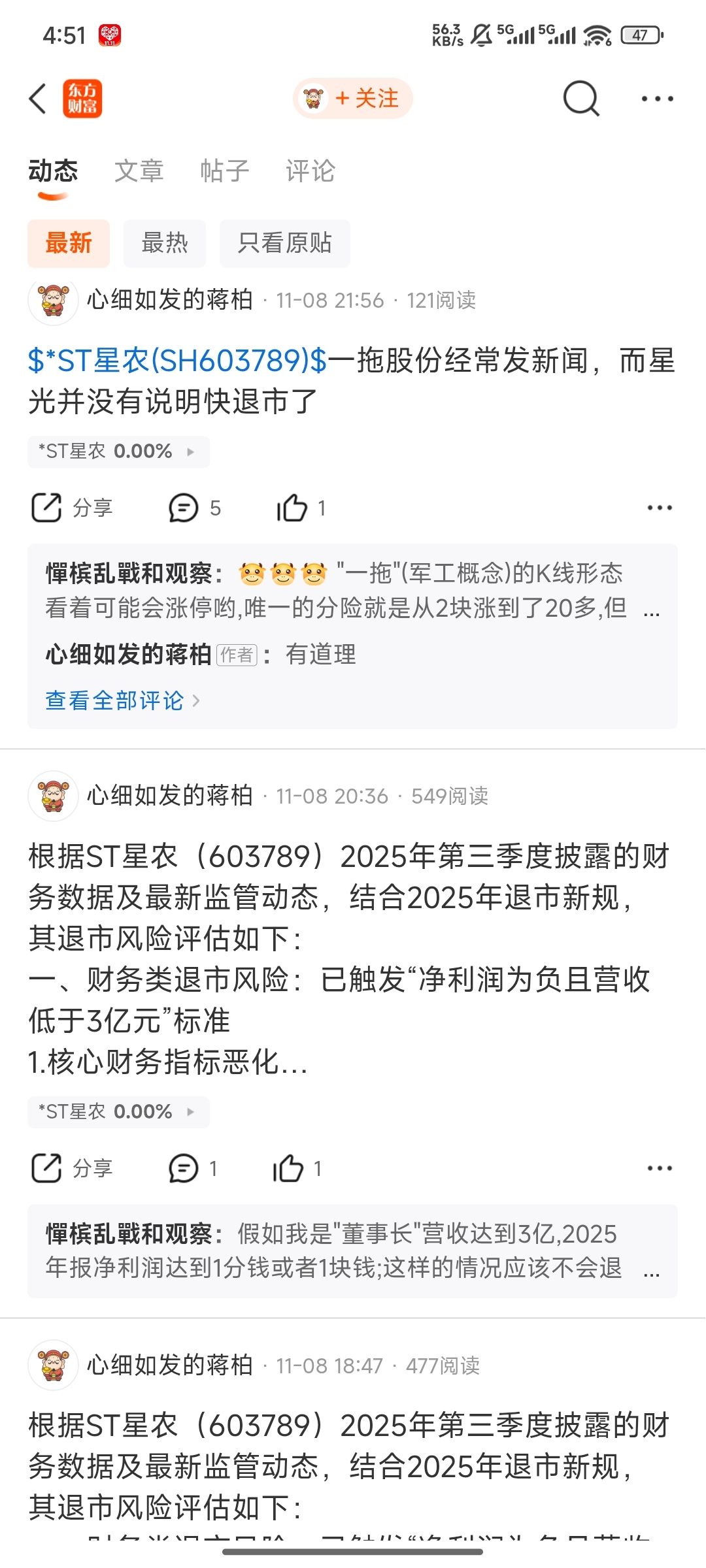 $*ST星农(SH603789)$ 老王怀疑这是主力团队专门来唱空的号,周末的时候连续发贴唱空,结果昨天周一就涨停。现在又来唱空了,还说去公司调研了,不看好还去调研个啥,前后矛盾,就是造成恐慌,忽悠散户交出筹码。