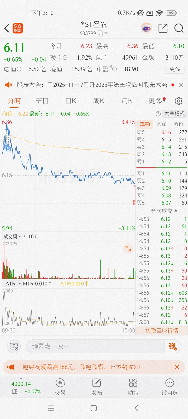 $*ST星农(SH603789)$ 今天这个T做的舒服