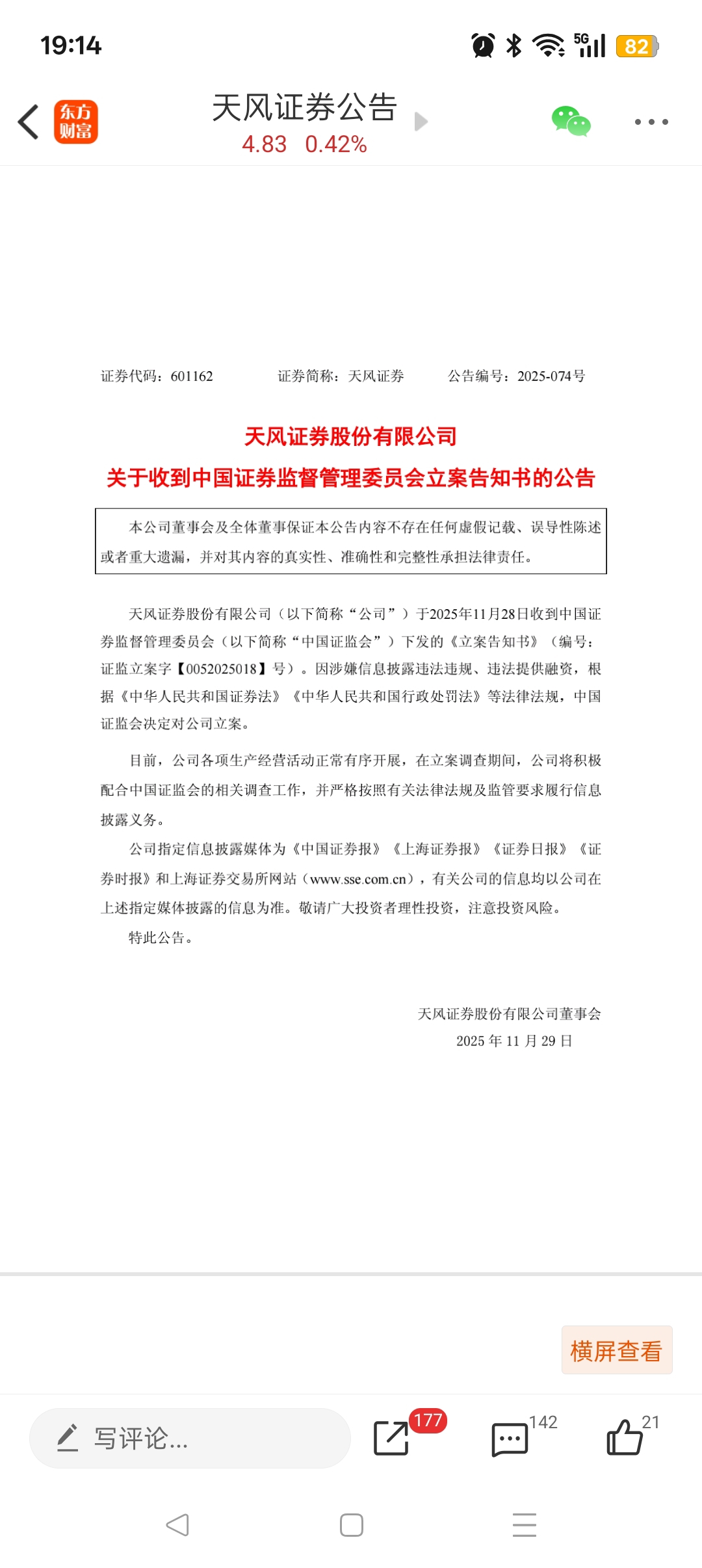 $*ST星农(SH603789)$ 天风立案信息是不是跟星农一样的
