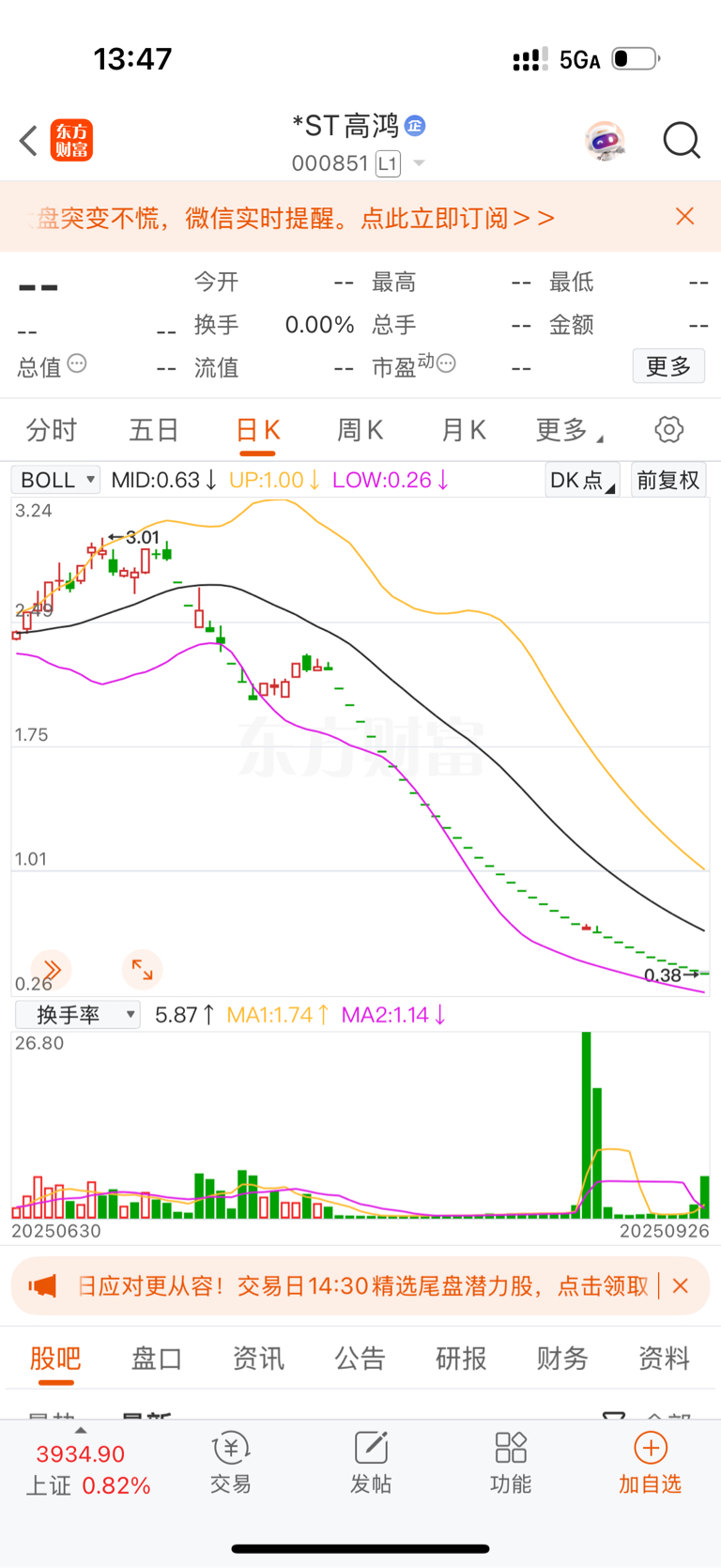 $*ST星农(SH603789)$ 立案顶多落地涨5个点,万一和高鸿一样突然加了个重大违法,就凉透了。年底了不值得博弈