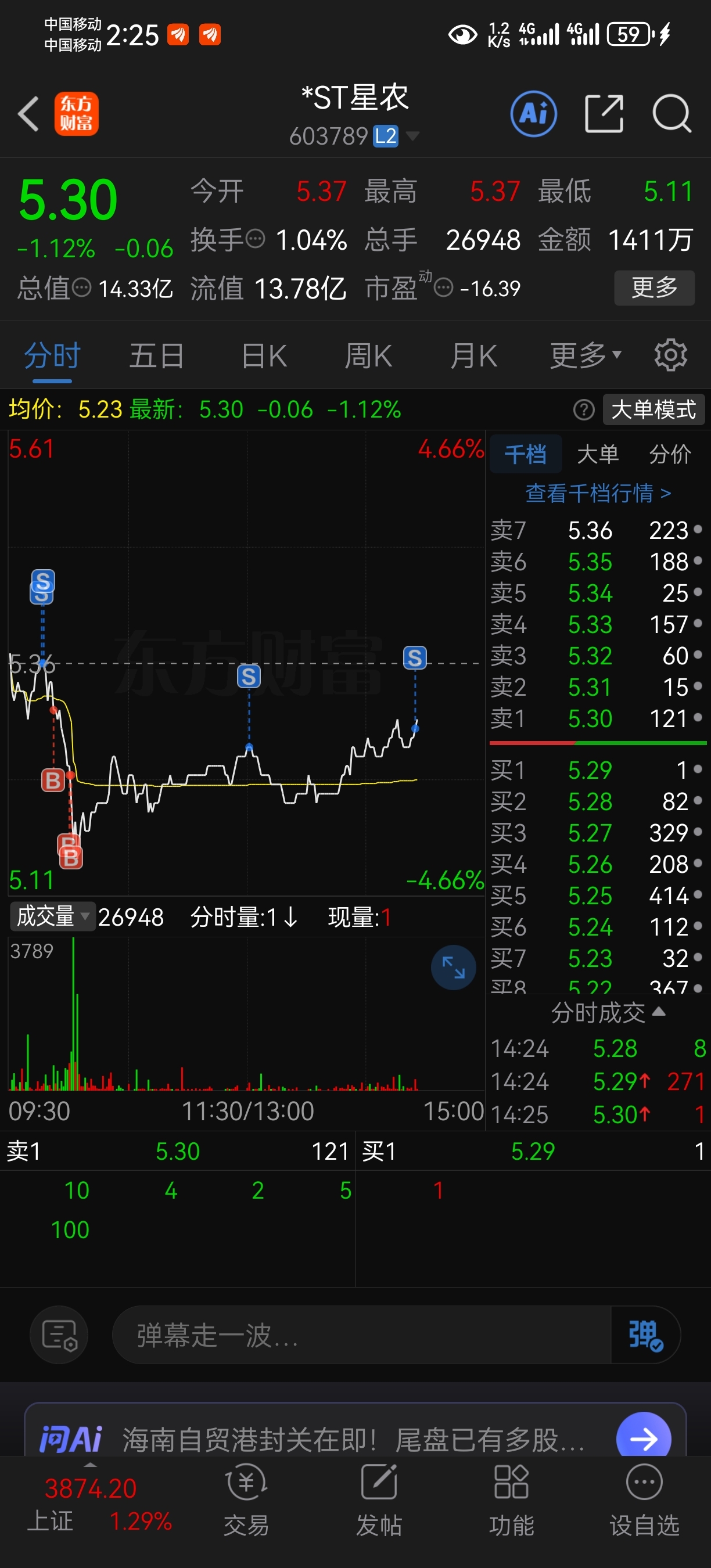 $*ST星农(SH603789)$ 老王我熬不住了,先走一步