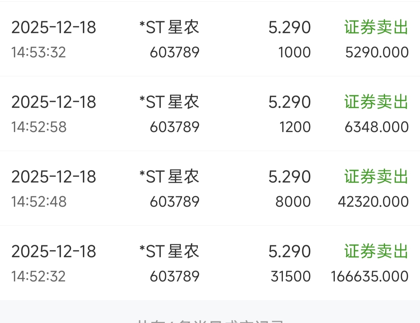 $*ST星农(SH603789)$ 尾盘走了,真的受不了这股,全天几百万成交量,整个a股找不出几家,主要的是老王不肯走,公众号还天天发利好,散户更加不肯交筹码,全是散户,主力估计都被逼的躺平了