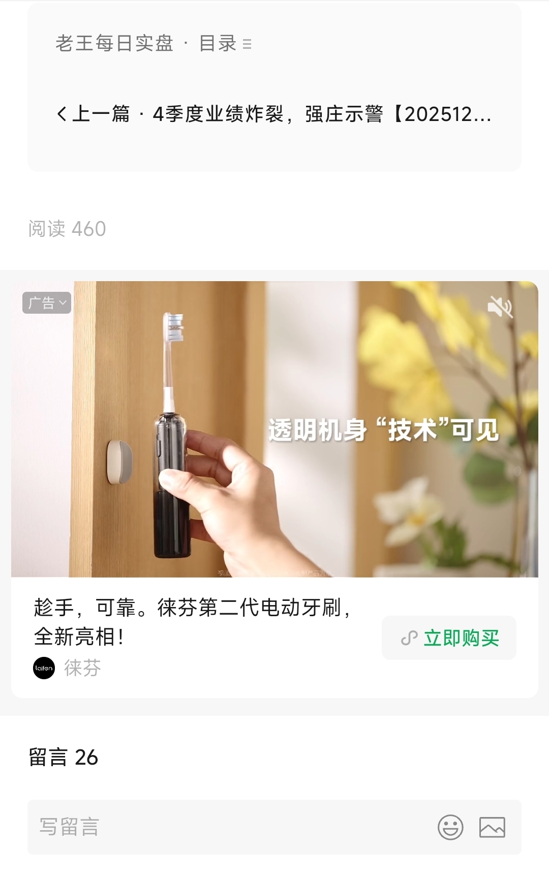 老王8现在文章里全是广告,一篇文章插好几条广告,文章中间,文末,留言区全都是,话