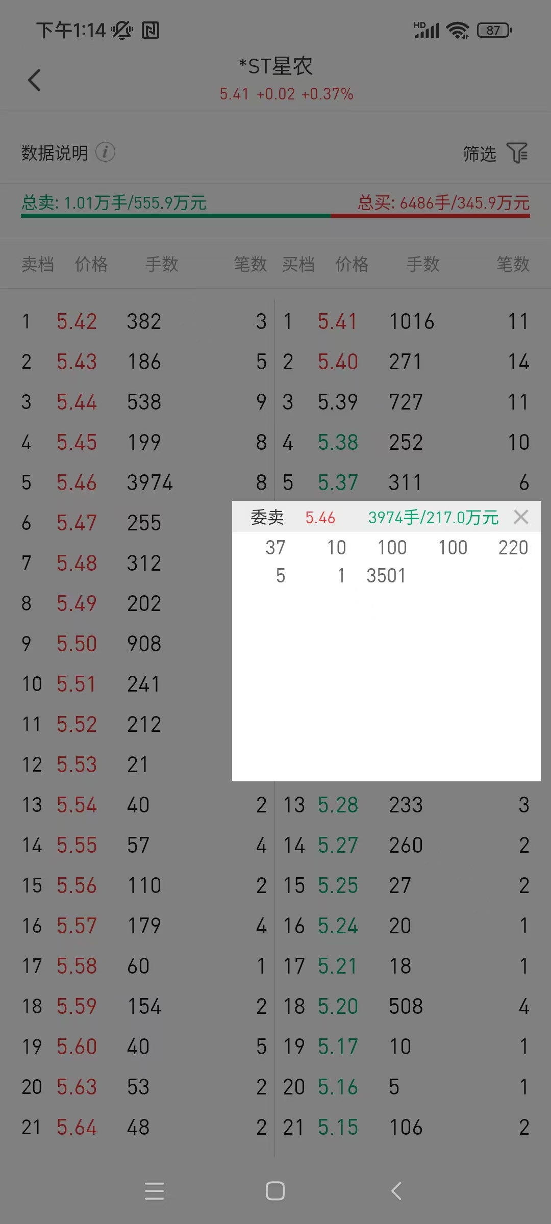 $*ST星农(SH603789)$ 这个压单的散户又来了,你压单有什么作用?往上面稍微吃一点,你马上又吓的撤单。