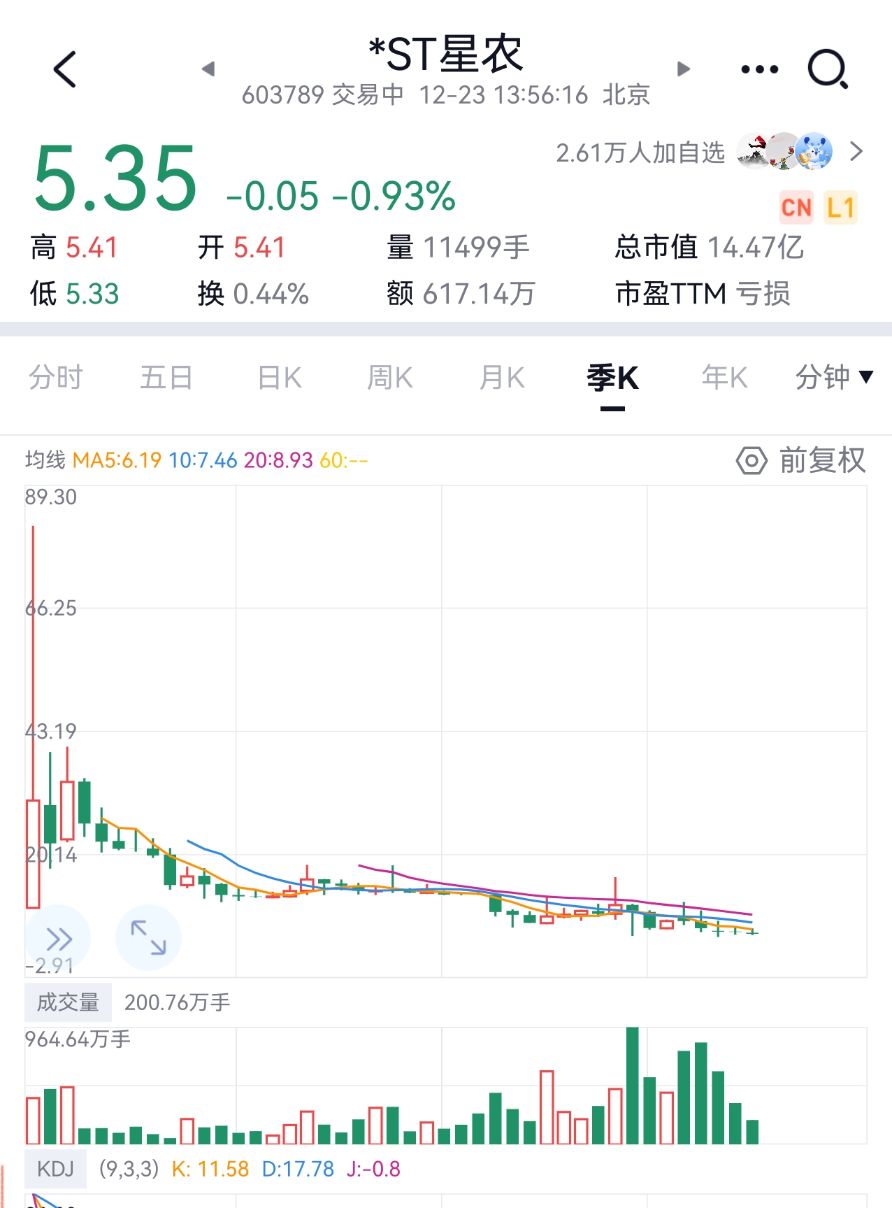 $*ST星农(SH603789)$ 这种走势的票,不退市是不可能的!拭目以待!