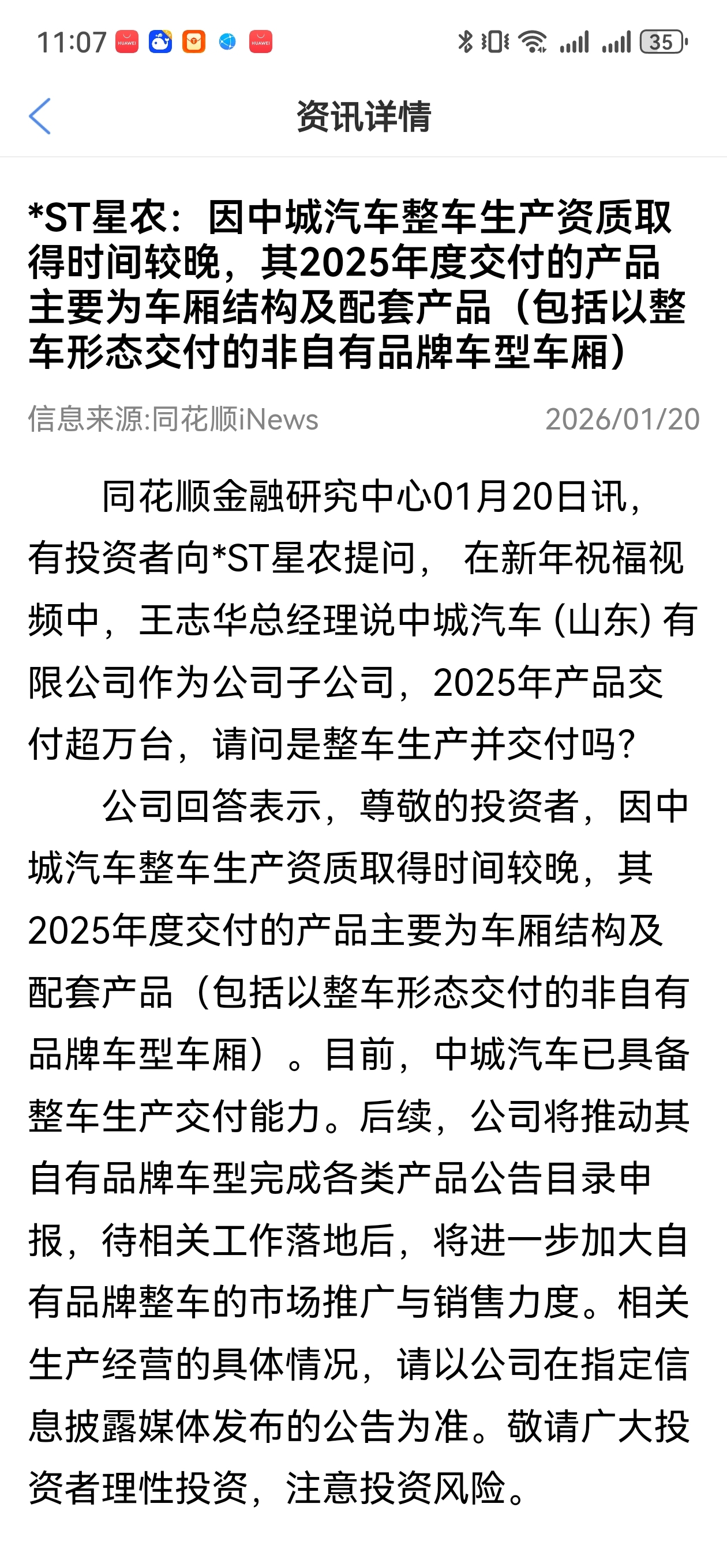$*ST星农(SH603789)$ 中城整车业务初见雏形快速成长中