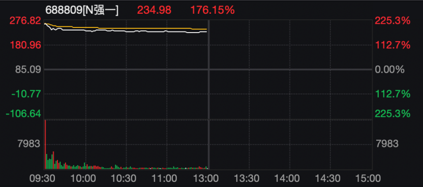 另一只新股强一股份盘中涨幅超过220%。