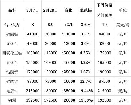 $华友钴业(SH603799)$ 市场交投活跃度提升,贸易商捂货惜售情绪浓厚,部分冶炼厂暂停长单报价以观望后市。一方面原料断供风险催生投机性囤货需求,电子盘钴价周内急涨创近期新高,带动现货价格急剧上涨。近期钴产品价格