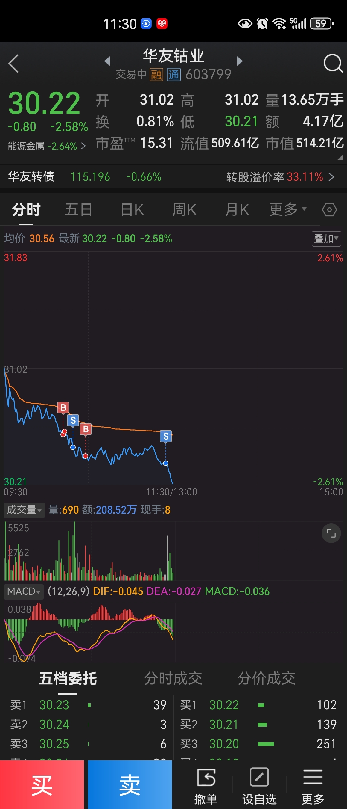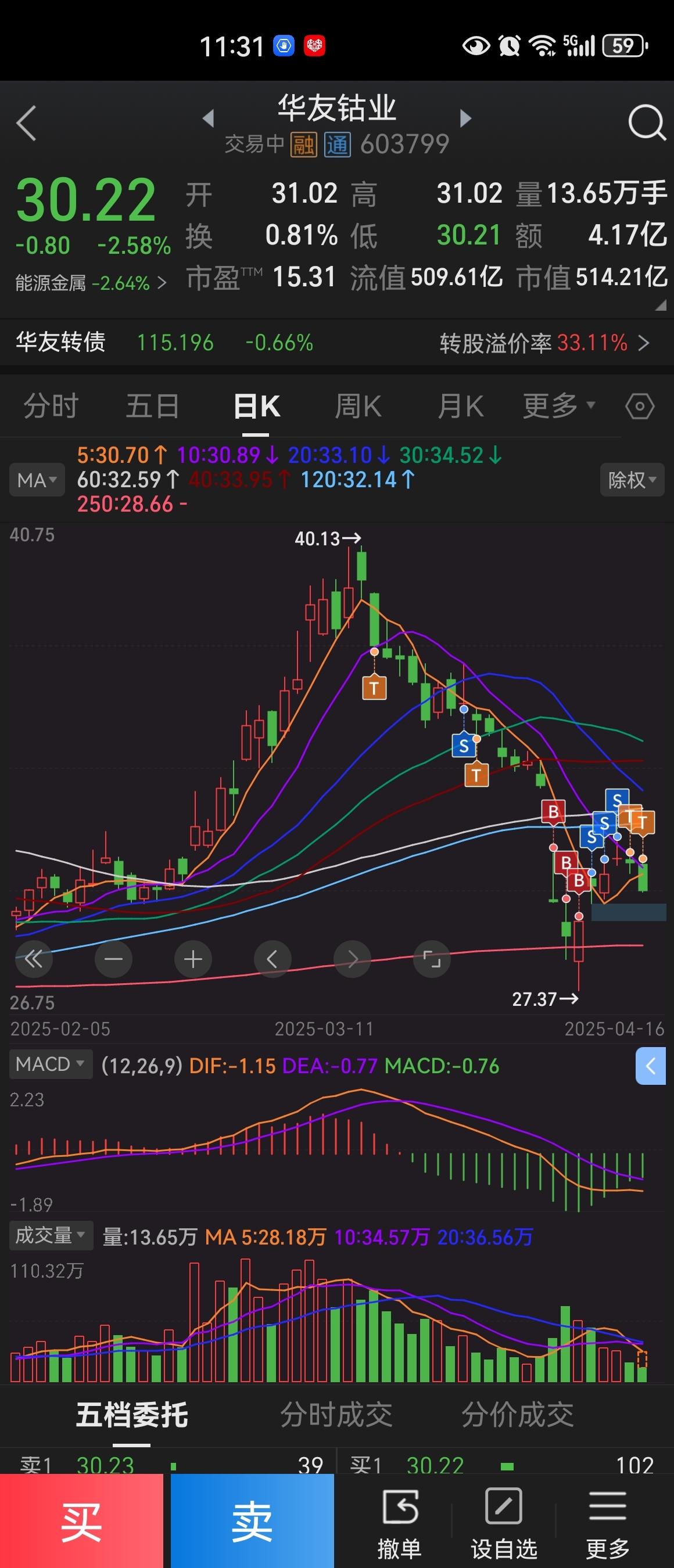 $华友钴业(SH603799)$ 今天做t的胜率太低,观察几天再说,估计这周不用动了
