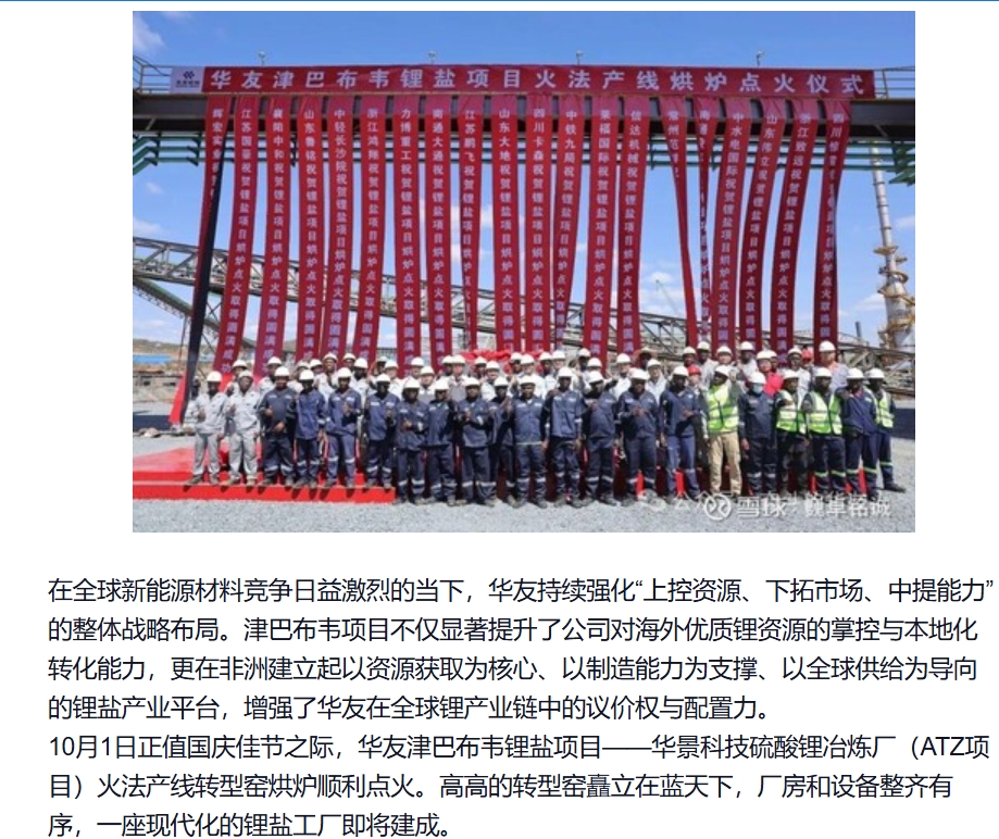 10月1日华友5万吨硫酸锂项目生产线顺利点火