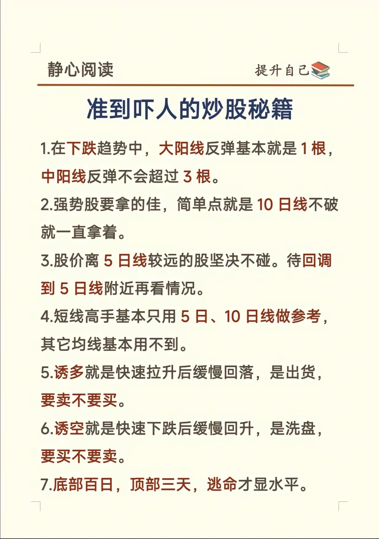 7.底部百日,顶部三天,逃命才显水平。