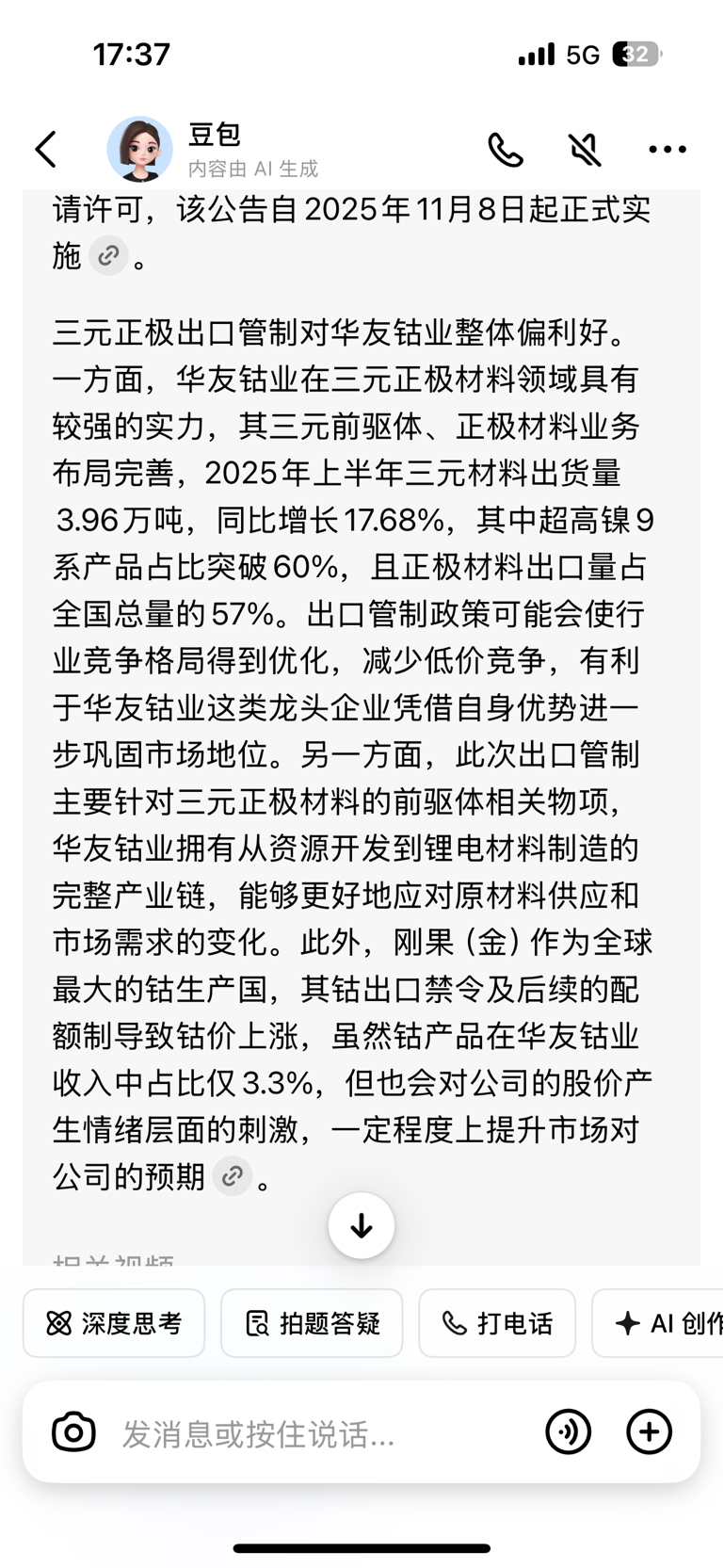 $华友钴业(SH603799)$ 别说什么订单毁掉了,能动点脑吗小韭菜,是限制不是彻底关掉出口,作为国内最大的三元正极材料生产商如果华友都不够格,到底有谁够格出口。你亏钱因为你是小韭菜