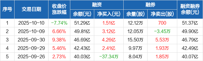 华友钴业:融资余额51.29亿元,创历史新高(10-10)