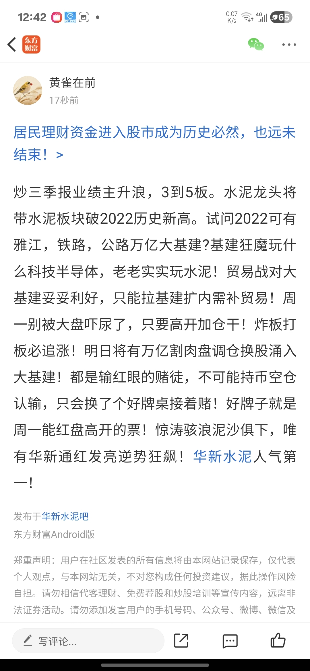 温馨提示: 1.根据《证券法》规定,禁止编造、传播虚假信息或者误导性信息,扰乱证券市场;2.用户在本社区发表的所有资料、言论等仅代表个人观点,与本网站立场无关,不对您构成任何投资建议。用户应基于自己的独立判断,自行决定证券投资并承担相应风险。《东方财富社区管理规定》
