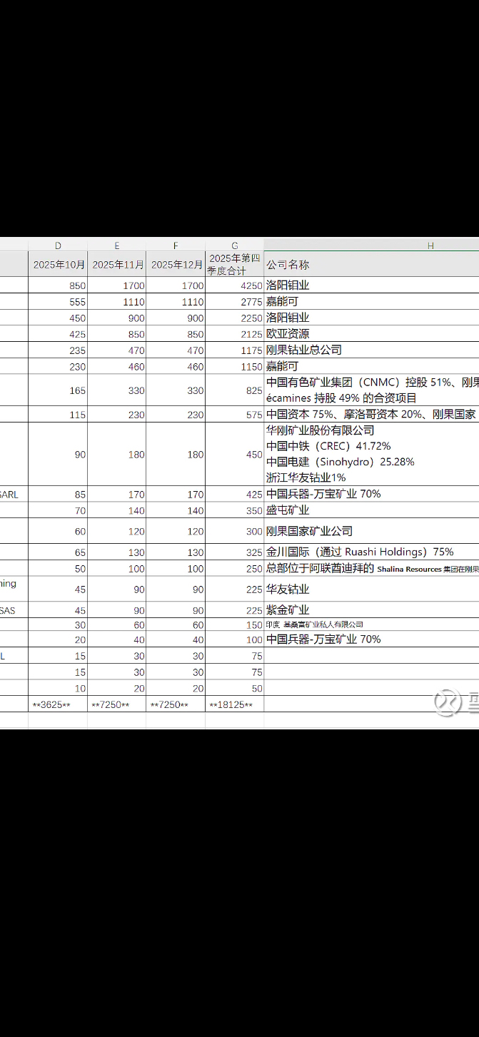 $华友钴业(SH603799)$ 洛钼明年在钢果金全年钴配额是应该不会超过3万吨,根据今年四季度的配额来计算的话才2.6万吨,华友现有权益产能就有1.3万吨,也不少了。加上明年年底的1.1万吨达产的话就可以和洛钼旗鼓相当了,这样算的话华友也相当牛逼了