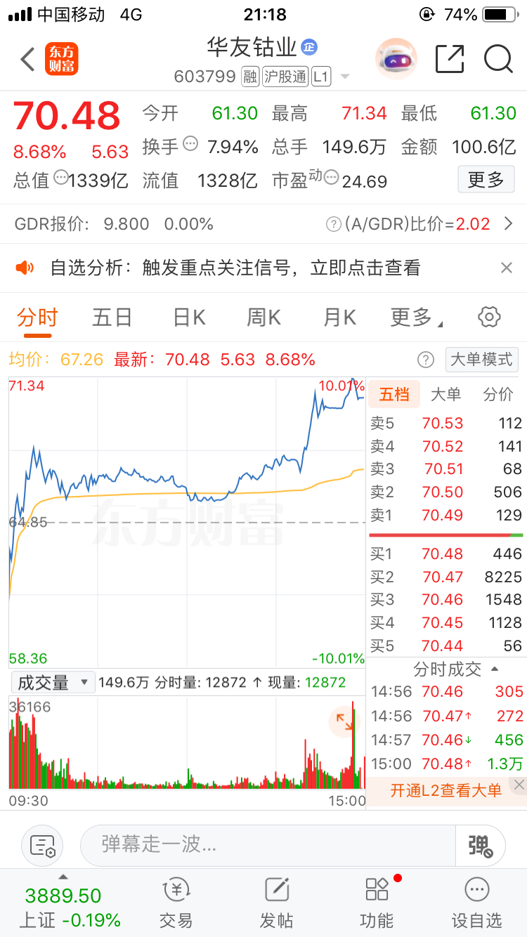 $华友钴业(SH603799)$ 4分之一仓,61.3元早盘竞价时段买入的,未来几天不操作,不加仓,也不卖出,也不做丅。如果明早竞价低开3%关门,后面基上就是温水煮了。如果高开高走,那感情好,用4份之一仓位将华友吸干,贪到尽。