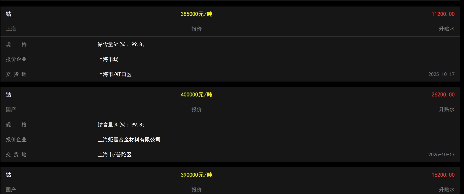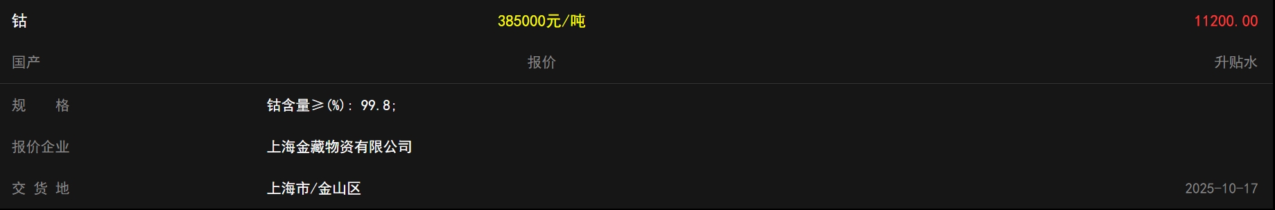 钴饥荒来了,今天钴又暴涨!三家报价均价39.1666万元