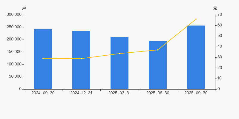 2024年9月30日至今,公司股东户数有所增长,区间涨幅为5.44%。2024年9月30日至2025年9月30日区间股价上涨126.59%。