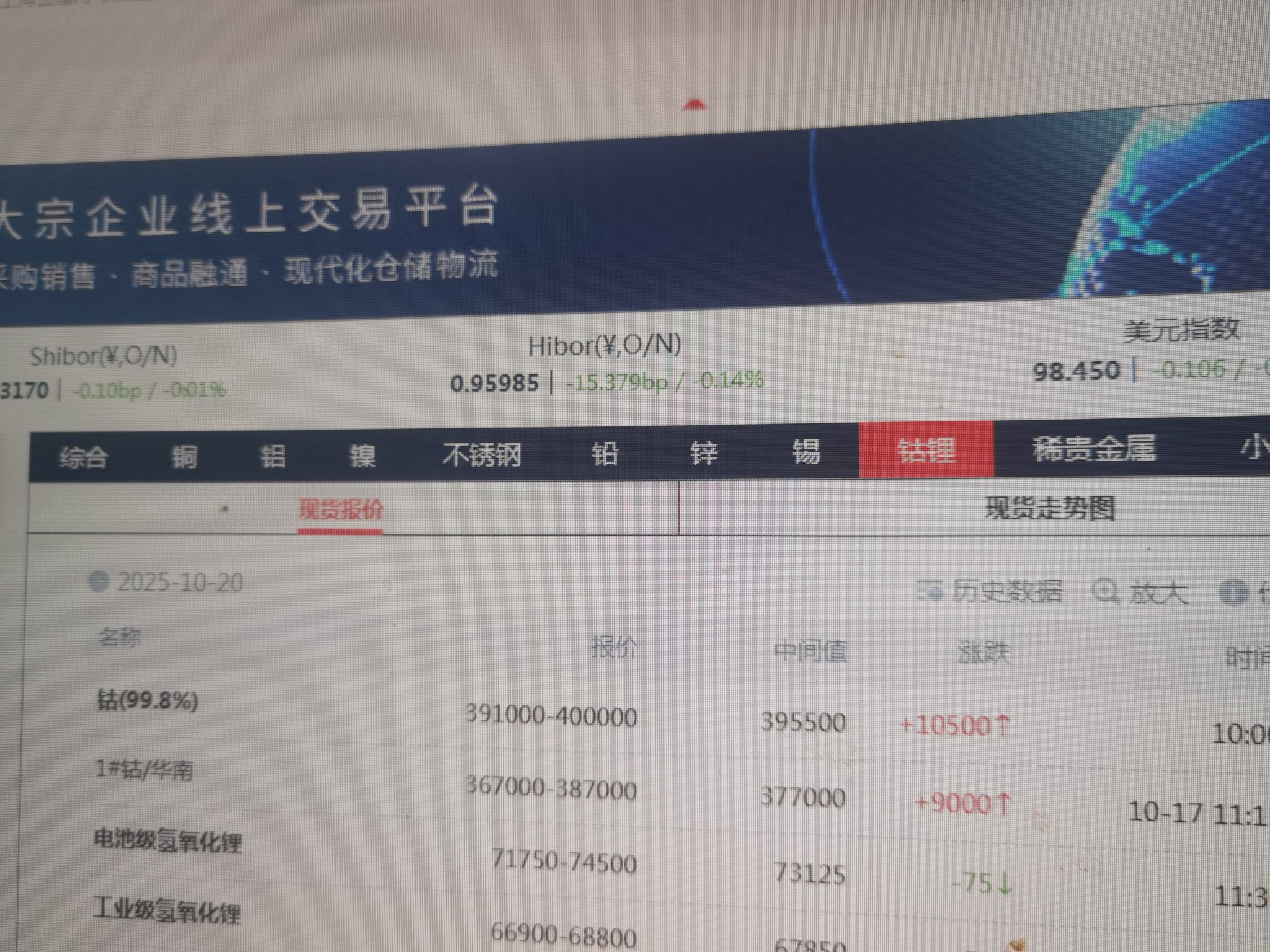 $华友钴业(SH603799)$ 钴已经40W了 ,还在跌