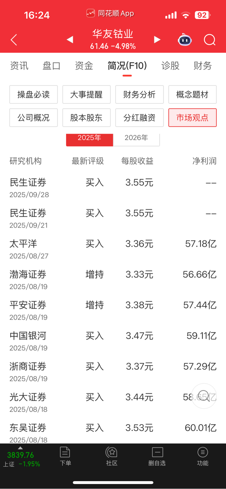 $华友钴业(SH603799)$ 这是知名券商对华友2025、2026年度的预测!2025年为3.55元/股!2026年4.3/股!今天59.20买入!第一目标超赣锋!第二目标超亿纬!
