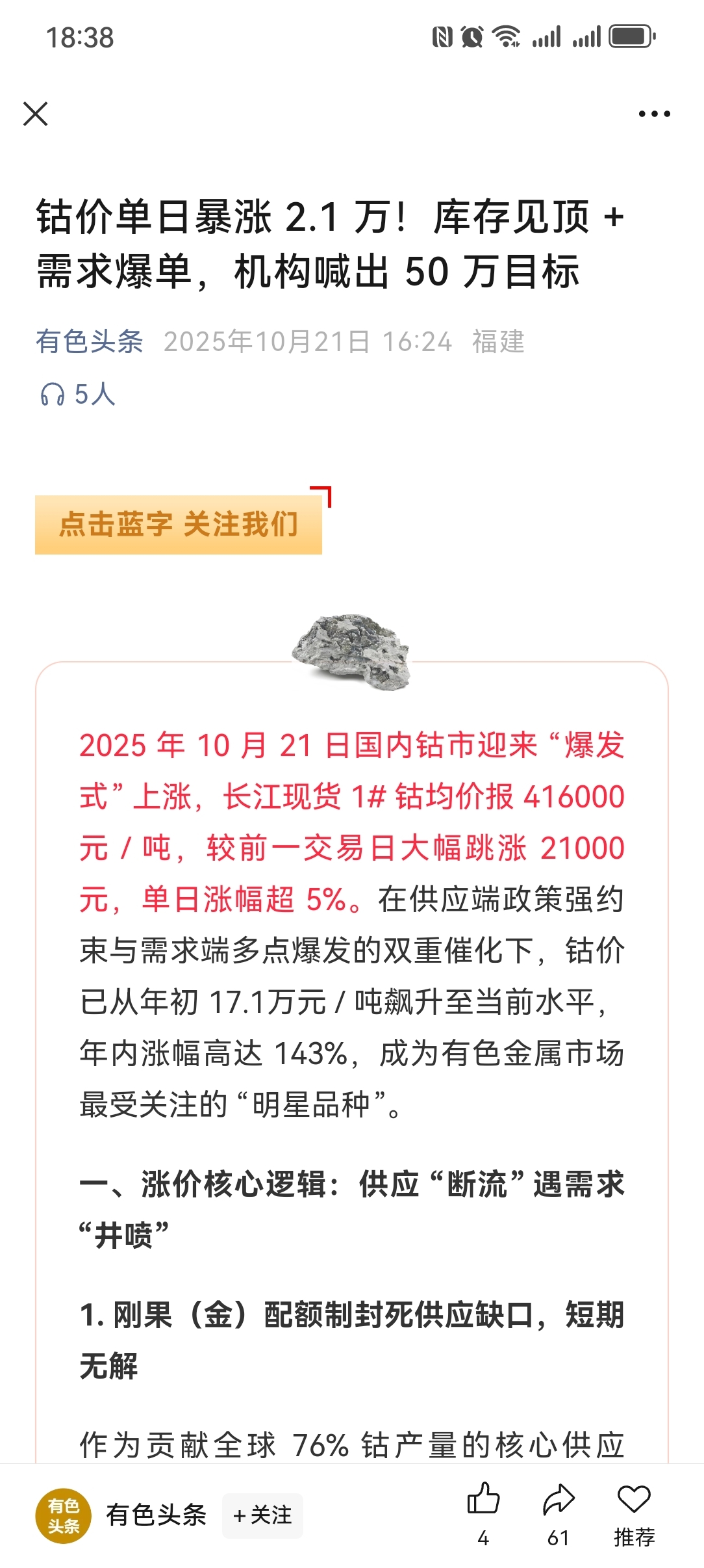 钴价一天猛涨两万一千多……年底向五十万每吨进军!