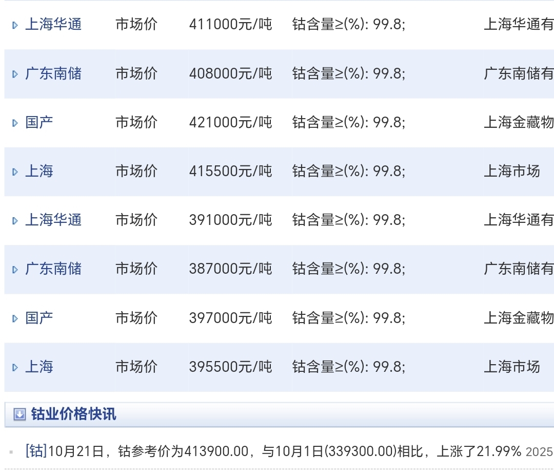 10月钴价已暴涨22%,但这仅是钴价暴涨的开始,因为接下来钴短缺将越来越严重,这
