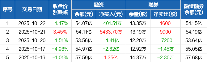 华友钴业:融资净偿还401.51万元,融资余额54.07亿元(10-22)
