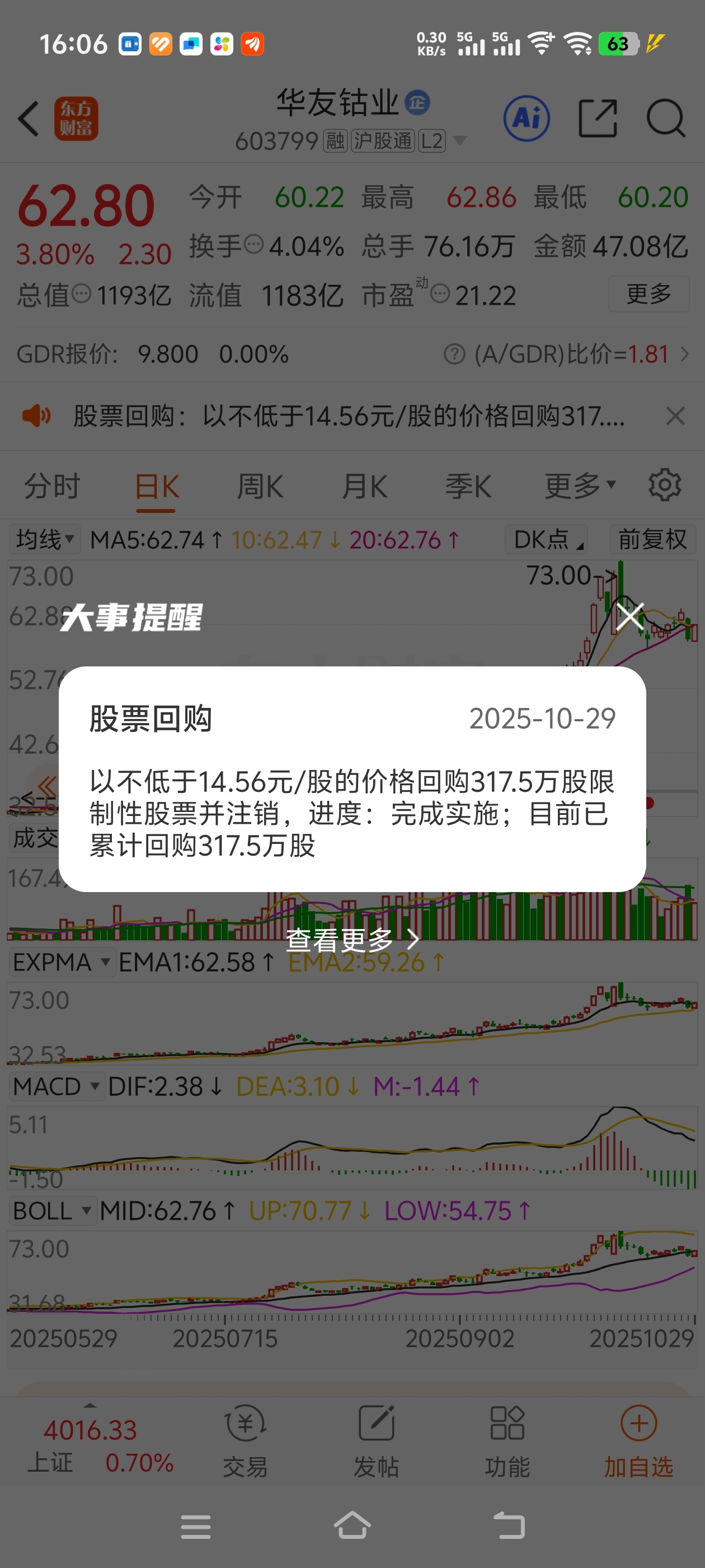 $华友钴业(SH603799)$ 什么意思,意思跌到16?在回购?