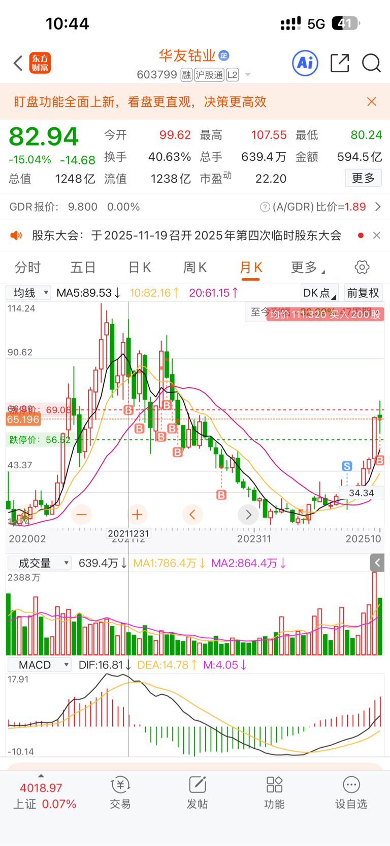 21年均价111开始建仓的,一路买一路跌,亏了4个w割肉走的,清仓后就开始涨了