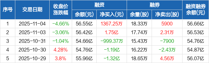 华友钴业:融资净买入1367.25万元,融资余额56.55亿元(11-04)
