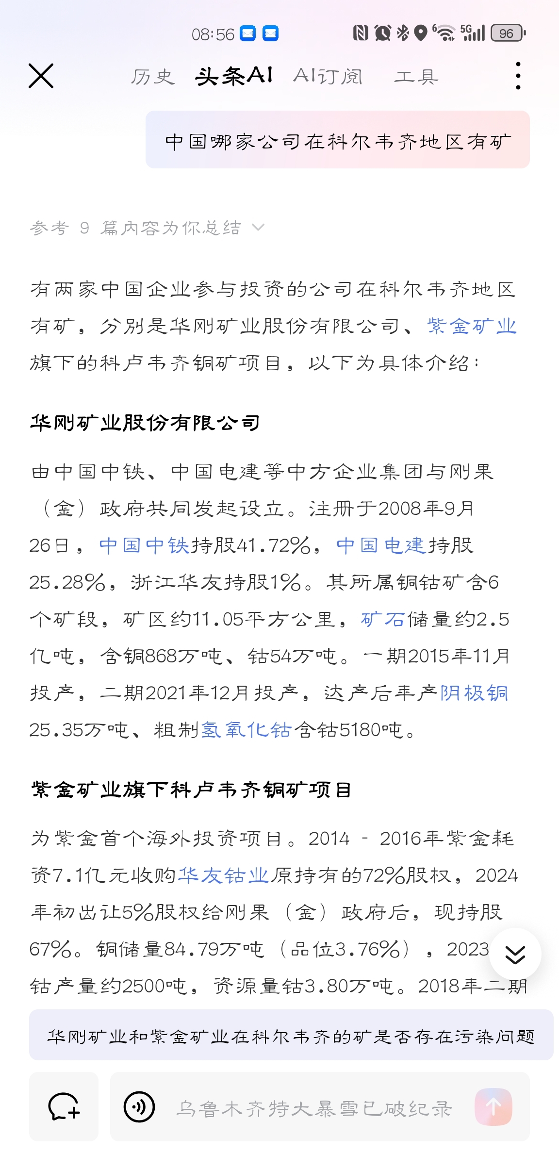 $华友钴业(SH603799)$ 这个信息对不对,华友在刚果金出事那个地区就没有矿。