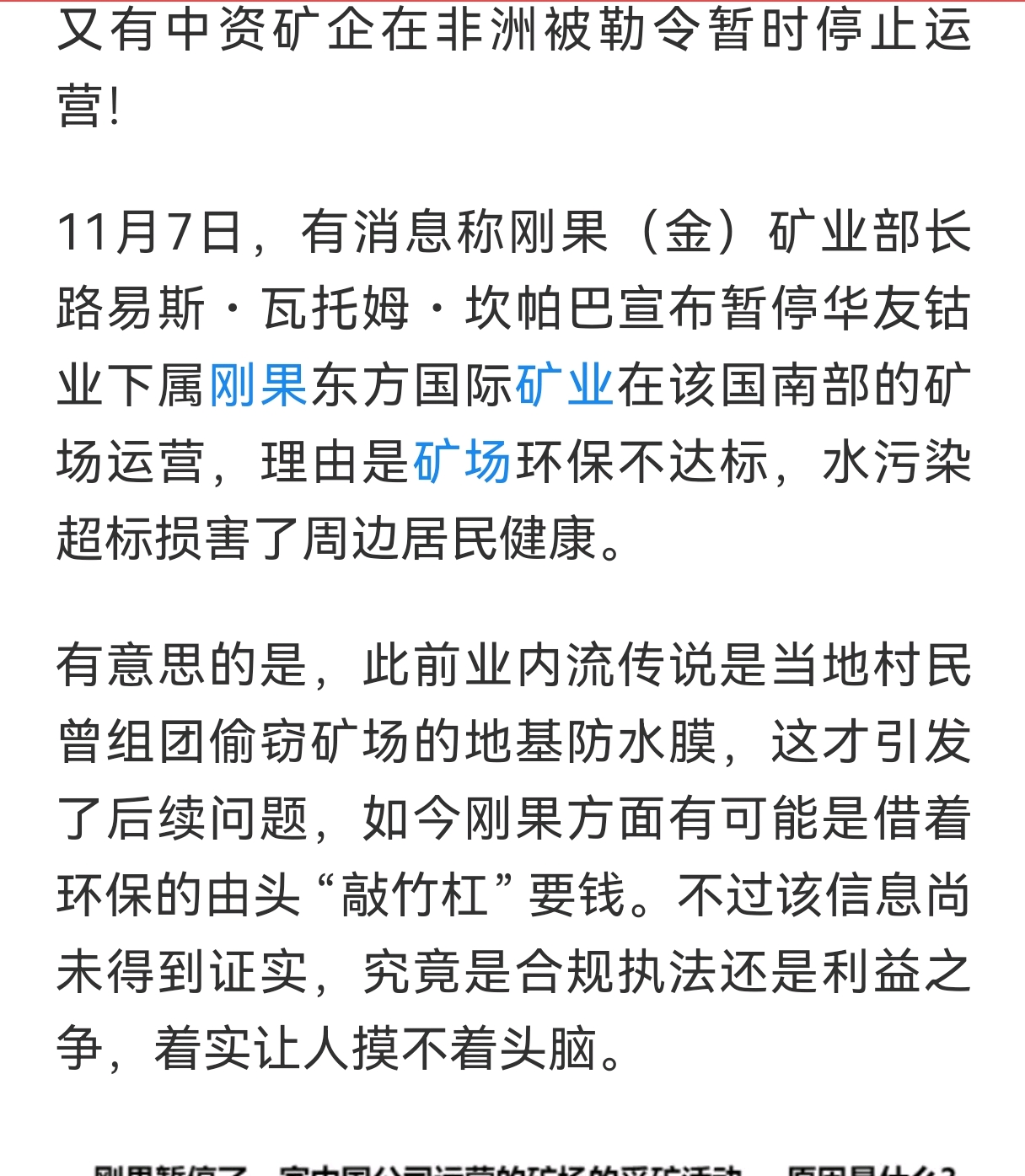 可能是被敲竹杠,但刚果本来就占比少,主要还是在印尼,不会有什么大影响