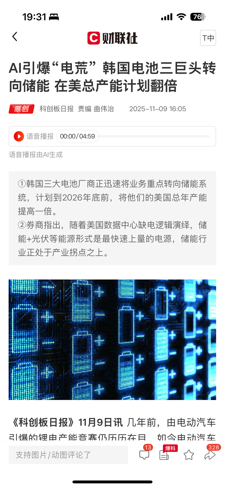 看下去了,满屏利空小作文!我来发个利好的消息吧,韩国电池三巨头翻倍的话,利好姑爷