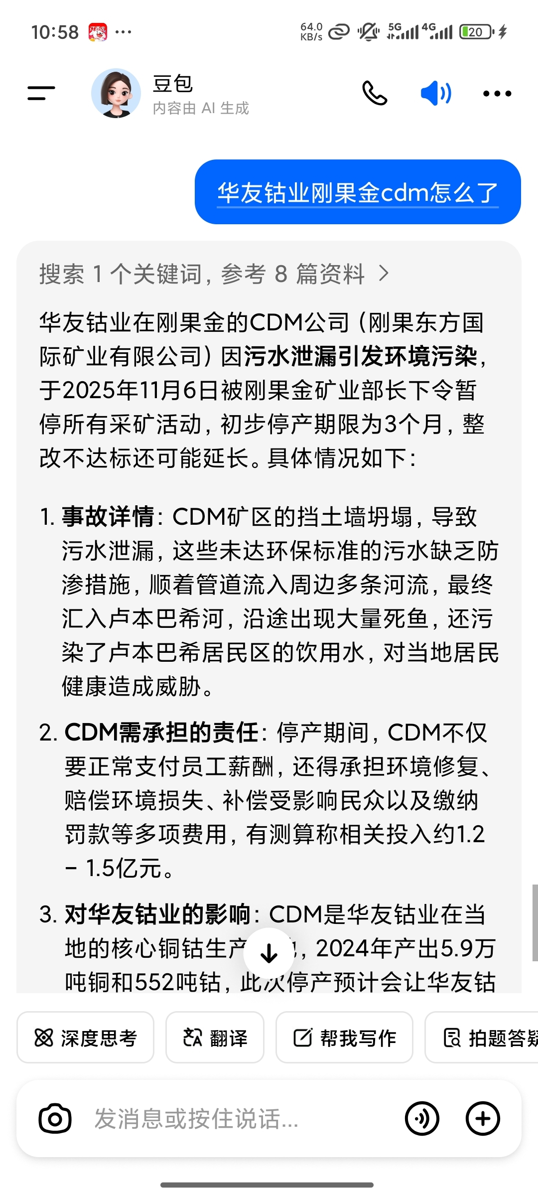 $华友钴业(SH603799)$ 华友刚果cdm停产三个月,消息好不?还不发公告?等主力撤退呢?